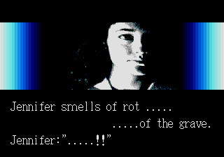 "Jennifer cowers in hinding and escapes from the monsters." "Jennifer smells of rot... ....of the grave. Jennifer: "...!"" Damn, that period sure made that sentence anticlimactic. "If you wonder aimlessly, you will surely fail in your quest" What's up? | My, she's quite, uh... dairy-like... | Good think they got Silky No. 1 instead of that asshole Silky No. 3... |