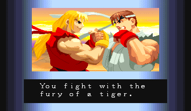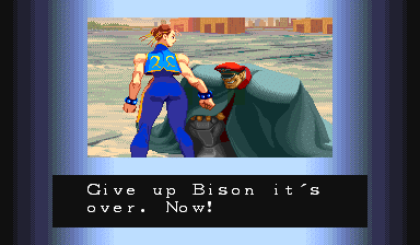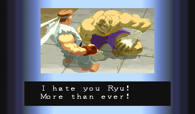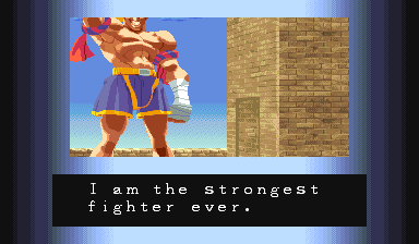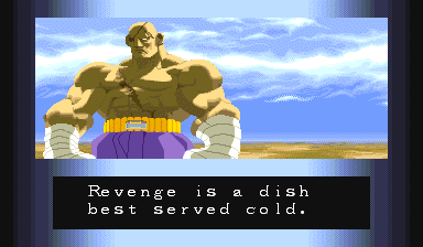 Adon, the Black Manta would be proud of you... Be a winner like Adon; Don't do drugs! | Um, anyone willing to explain what Birdie's ending means? | Wow, does Charlie ALWAYS need to die in his ending? Well, cause of the storyline, he actually does... | Um, why doesn't Chun-Li just kick his head off? | Yeah, he'd be powerful if he tried, but all he has now is the ability to levitate, and that Psycho Crusher... | Funny, cause if he's training to defeat Ryu, he just beat him to get this ending... | Wow, an ending where the main character's sacrifice was in vain... Never saw THAT before... | But Riki-Oh fights with anger, and can punch through people, so EXPLAIN THAT, RYU! | Don't you see? Violence doesn't solve anthing, Sagat. Except for boredom. | Damnd and Andore lack Sodom's vision...