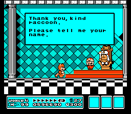 "One toot on this whistle will send you to a far away land!" "Pick a box. Its contents will help you on your way" Can't this idiot see Mario's face? | The Hammer Bros. suit makes Mario all the rage in the clubs | First thing that comes to mind when rescued by a raccoon: Ask for his name. |