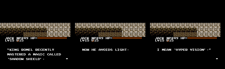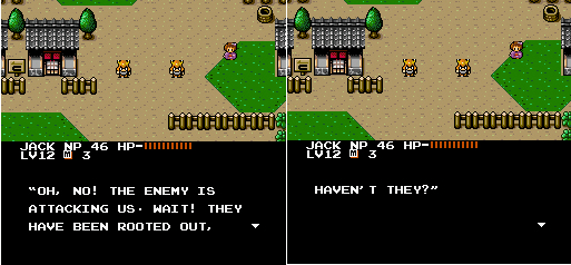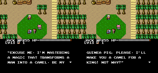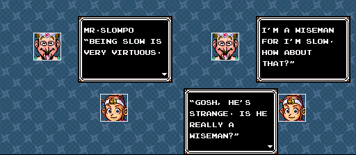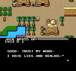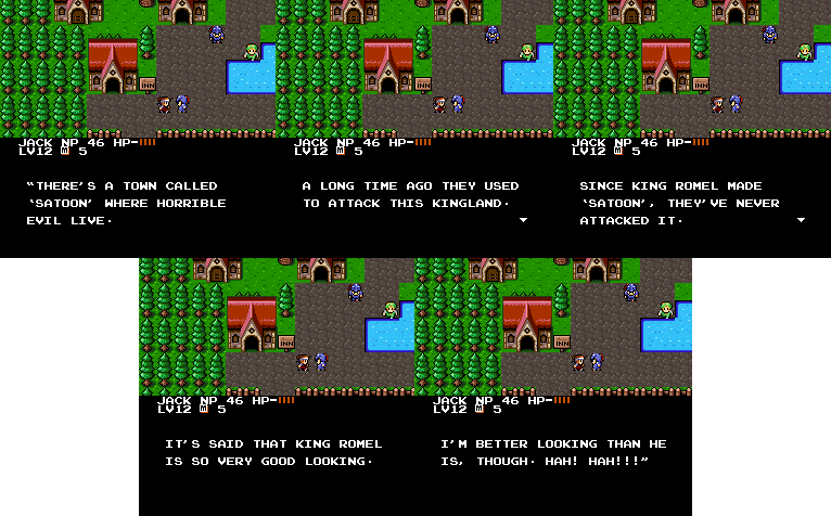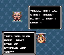 Anybody! Anybody at all! | I get those confused all the time | When a King asks you about your balls, always reply politely | I don't know. The stupidest man in the world? | A tempting offer! | Romel tries to sound threatening | Buying all these Sweet Buns make me SO ANGRY!! | Um, what would? | So was that part of the spell, or do you just talk like a retard for the heck of it? | I honestly can't narrow down what the funniest part of this one is.. | They sure sound evil. | How do you do that, exactly? | Having fighters will do that | Anyone with an attack called that just HAS to be cool | Multiple personality Ninja Boy | Um, what would? | But I'M a Ninja | Great pre-battle grammar | Well, that DOES sound fun.. | MYSTERIOUS! | That's a tad redundant. And stupid | King Romel can't keep his odors to himself | This fellow has the attention span of a footstool | This magic must never be used for evil | Too bad this guy doesn't have the spunk of the pumpkin-freak | Rick, the humble martial artist | ALL FEAR THE LEADER! | This just sounded utterly silly | I'm with the Ninja Boy on this one | People this stupid should be banned from magic | Now you're just a man | A silly conversation about training | I wouldn't get my training from this guy | A stupid one | Ya! Ha! More multiple personality weirdness | This is the worst spelling of "you're" I've ever seen