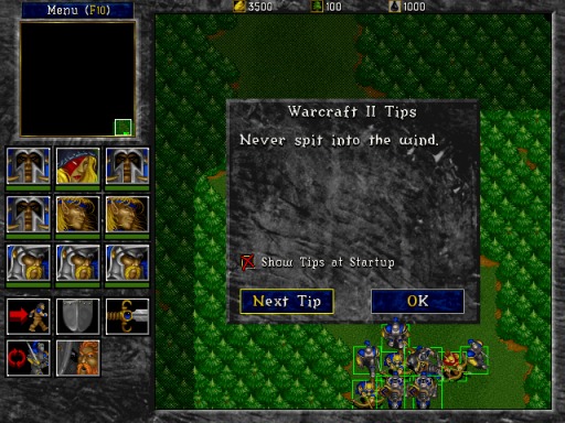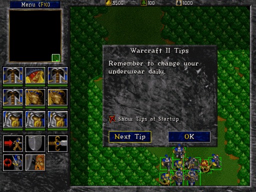 Her voice is disturbingly mannish. I guess at time of the game's release, Blizzard wasn't yet the game developing powerhouse it is today and couldn't afford to hire a genuine female actor (instead relying on the programmers, artists and janitor) | Grom Hellscream sings | Footman | Human ship | Ogre | Orc grunt | Orc ship | Sheep | Troll Sound advice from the folks at Blizzard:1 | 2 | 3 Wackiness I (and I expect also others) missed from the install program! |
