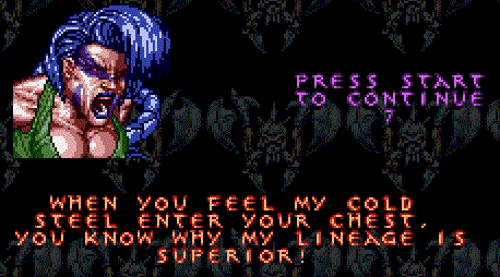 So, I guess it's huge, musclely, sword-wielding barbarians versus musclely, scantily clad, huge breasted valkyrie maidens. I guess it's sort of like some of those fantasy paintings on the side of vans, except available on your SNES!