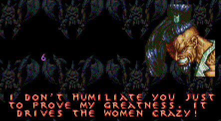 Sure, it was sleeping and I used an uzi, but I still killed it! | Nice to see he has a positive attitude... | I'm guessing this is her tragic background story... | Thief! | Man, this is a line right out of a hentai... | The over the top intro | Mack Daddy Zorn | I dunno, I'm pretty dead... |