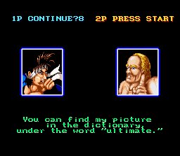 Wow, great, ANOTHER NEO GEO FIGHTING GAME. Let me ask why the fuck any arcade owner would get this shit when they could get any of the other ten thousand Neo Geo MVS fighting games? Oh wait, it has time travel, so they can avenge their fathers and save Mother Russia... IN THE FUTURE!
