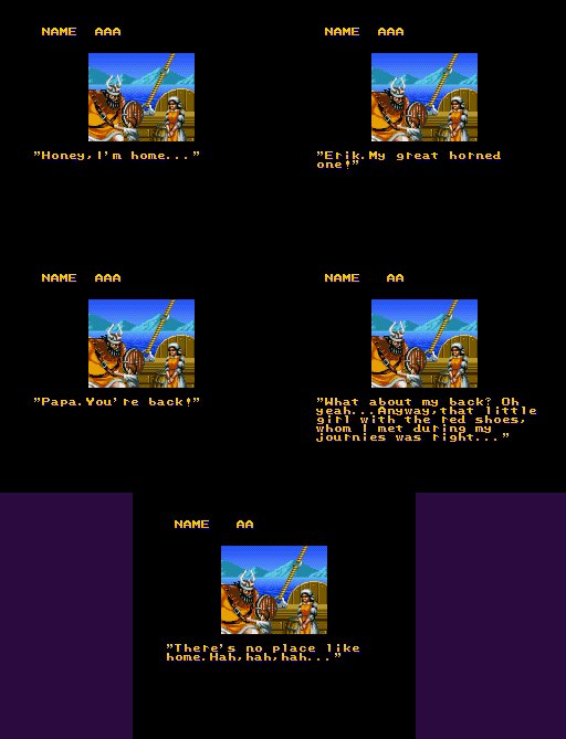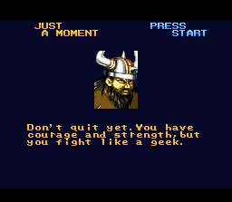 Erik's guide on how to live better and reach Valhalla | BRIDER WILL SHOW YOU THE PATH TO ENLIGHTENMENT! | ...Is there a hidden boss fight against Dorthey? | LOVE AND PEACE~! | Wow... A football player who quotes Nietzche... | Well, you're more sophisticated than the "fighters" in Pit Fighter and any Jaguar game | Sorry. I guess I didn't take your feelings into consideration when trying to stop your evil plans of world domination... | What about the power of DESTRUCITY?!? And the FORCEFIELD COMING FROM THE WARRIOR'S PORES?!?
