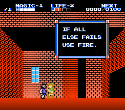 Crack Crack Crack, the egg into the bowl. | Sound advice from Nintendo | "Get candle in Parapa. Go west." | This is what happens when you hire retards as extras in your game. | "I am Error" "In Midoro swamp find a handy glove." | What a gratifying ending! | Chicks in Zelda 2 are easy | "I can give you most powerful magic." |